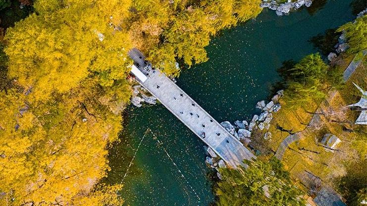 山西太原:秋染晉祠 百年銀杏披“金甲”